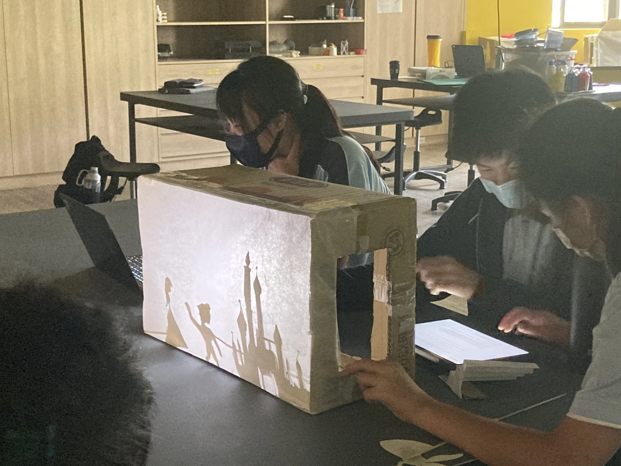 The Shadow Puppet unit integrates Language Arts, Art, and Technology, empowering students to blend creativity with technical skills. Students designed and built a sophisticated 2-3 minute play, co-writing scripts with AI to fuse fairy tales and genres, and using coding with Circuit Playground to program synchronized lighting, creating mood and motion. They crafted backgrounds and puppets using Adobe Illustrator and Photoshop for laser-cutting, assembling them with pins and skewers. Over 8-10 weeks, students developed original scripts, built sets, and performed, practicing language to communicate their ideas clearly. This opportunity allowed them to produce original shadow puppet productions efficiently and using AI ethically, combining technology and artistry, and empowering students’ creative agency throughout the process.